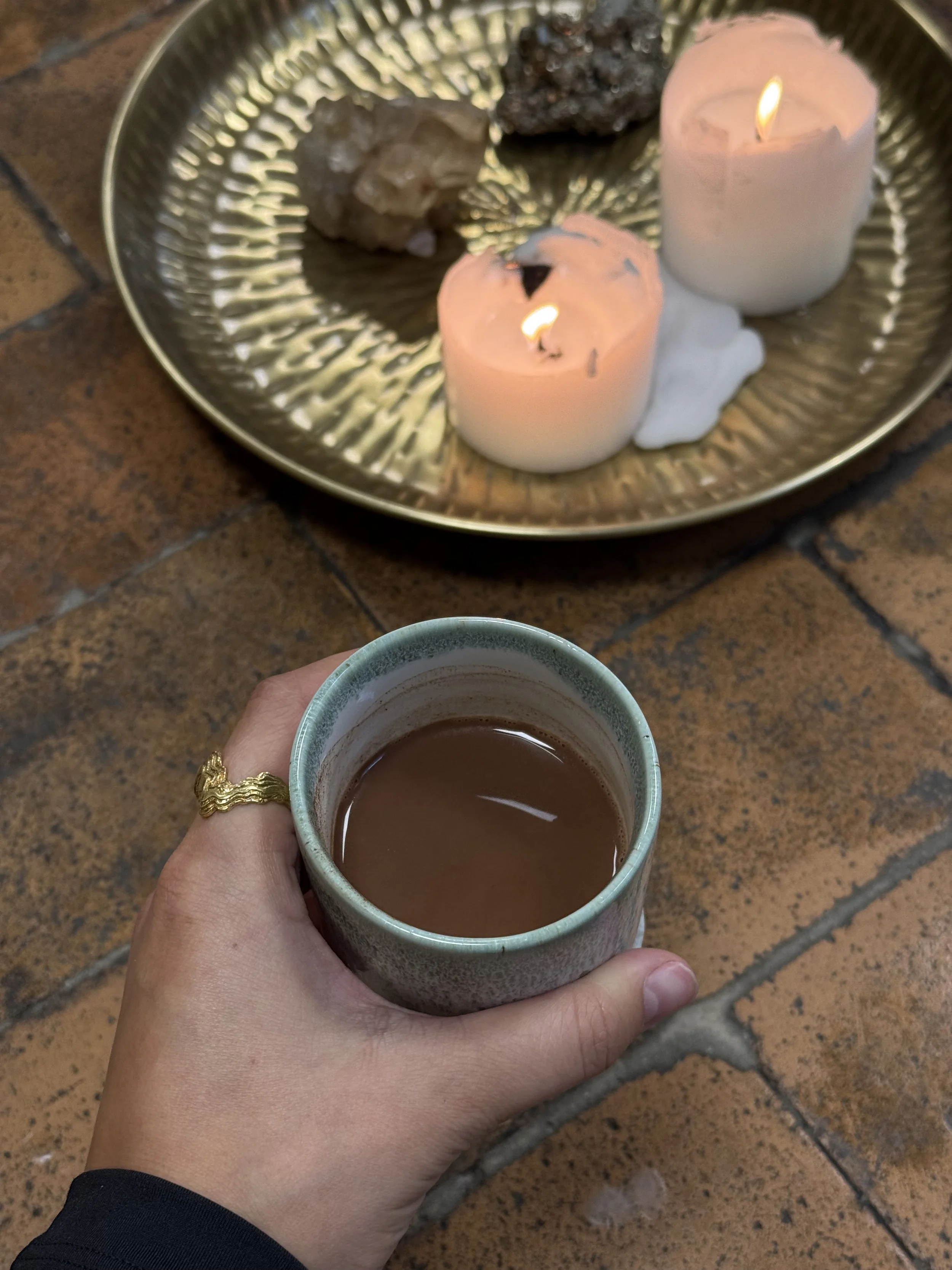 Her vil der blive serveret ceremoniel kakao til at fordybe din praksis.